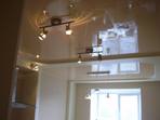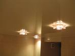 Белое матовое полотно (Россия) со встроенными светильникаи в санузле